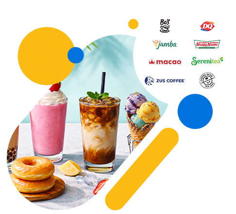 • Participating merchants: Bo's Coffee • Dairy Queen • Jamba Juice • Krispy Kreme • Macao Imperial Tea • Serenitea • The Coffee Bean and Tea Leaf • ZUS Coffee